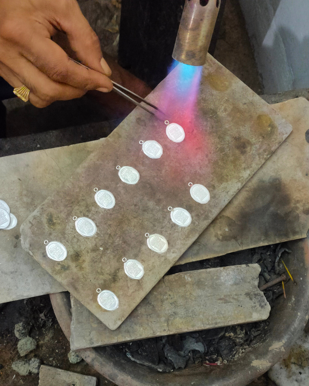 Every Shritha Silver piece is handmade by skilled local artisans in Udupi, a town known for its devotion and artistry. Each piece is made with patience, love, and spiritual intent.